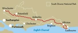 the South Downs Way is a waymarked bridleway; very few stiles; few towns/villages en route; 12 stages (max length 12 miles)